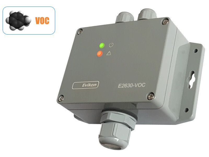 Zariadenie je umiestnené v nástennom kryte s ochranou triedou IP65, čo zaručuje jeho odolnosť voči prachu a vode. Okrem toho disponuje vizuálnym a akustickým alarmom pre včasné varovanie pri zvýšenej koncentrácii VOC. E2630-VOC je vybavený dvoma výstupnými SPDT relé, ktoré umožňujú jednoduchú integráciu s ventilačnými a poplašnými systémami.