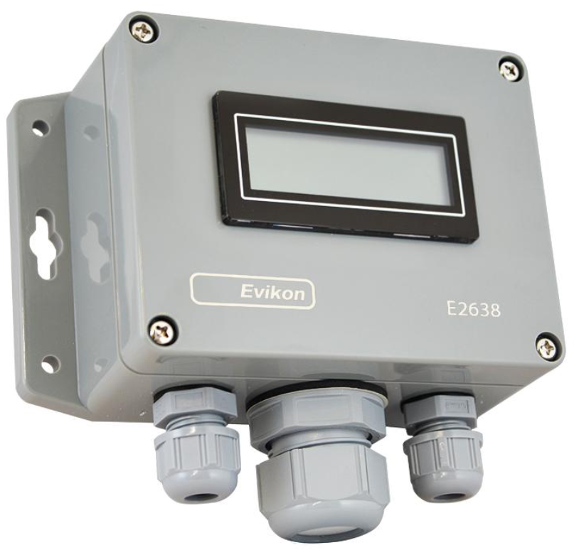 Detektor plynu pre oxid uhličitý EVIKON E2638-R-CO2-LCD, výstražný signál: svetelný (blikajúci displej) + zvukový, LCD displej s aktuálnou meranou hodnotou, napájanie: 90...265 VAC, rozsah merania: 400-5000ppm CO2. Viac informácií